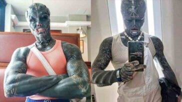 A woman who transformed herself with $250,000 worth of tattoos and body modifications.